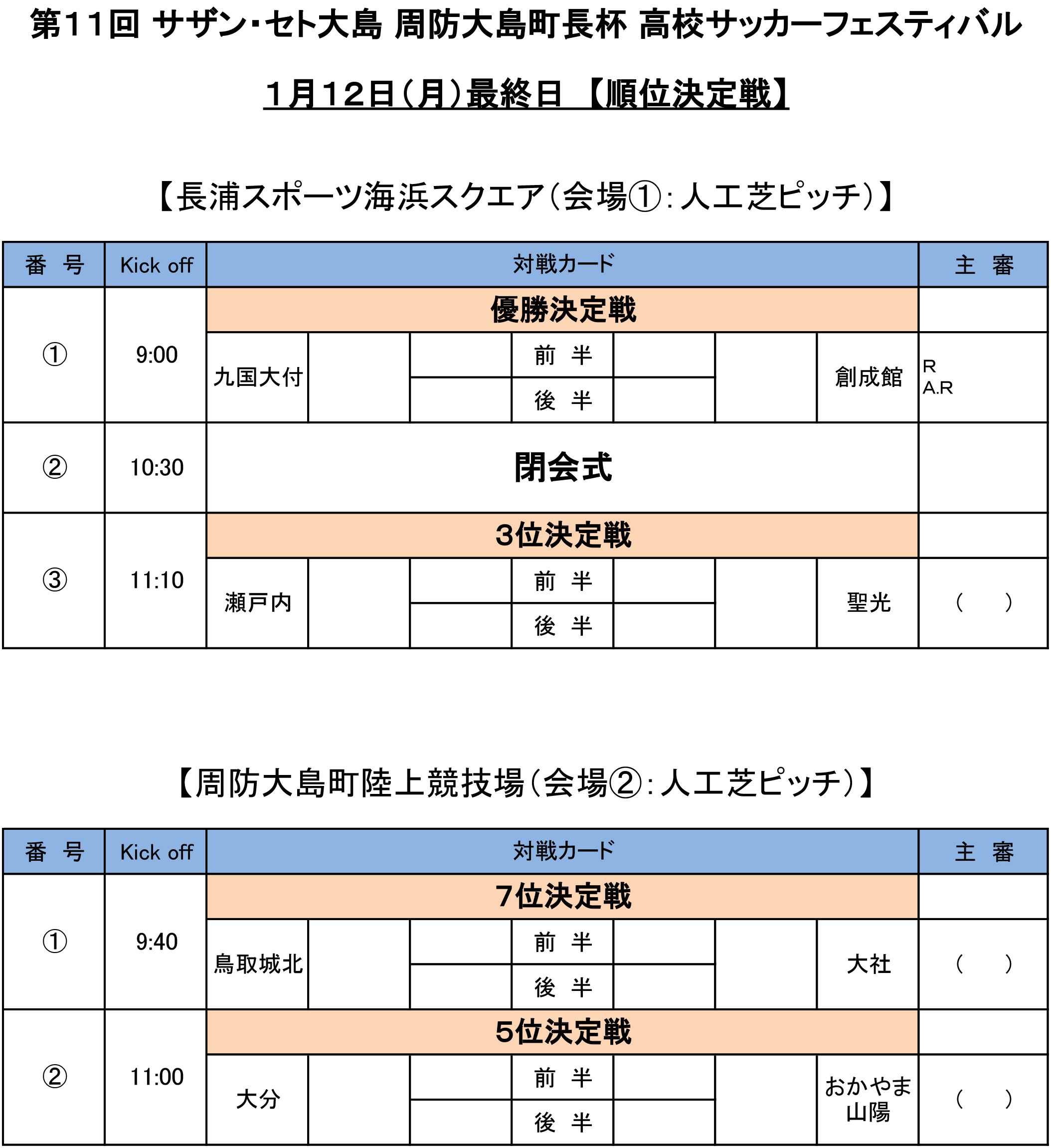 高校サッカーフェスティバル 決勝戦・順位決定戦のお知らせ